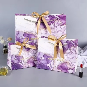 Tùy Chỉnh In Logo Sang Trọng Mỹ Phẩm Quần Áo Mua Sắm Quà Tặng Giấy Bao Bì Túi Với Ribbon Xử Lý
